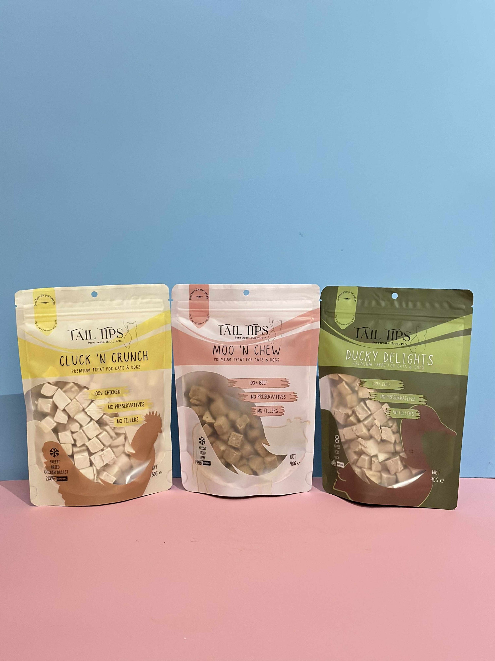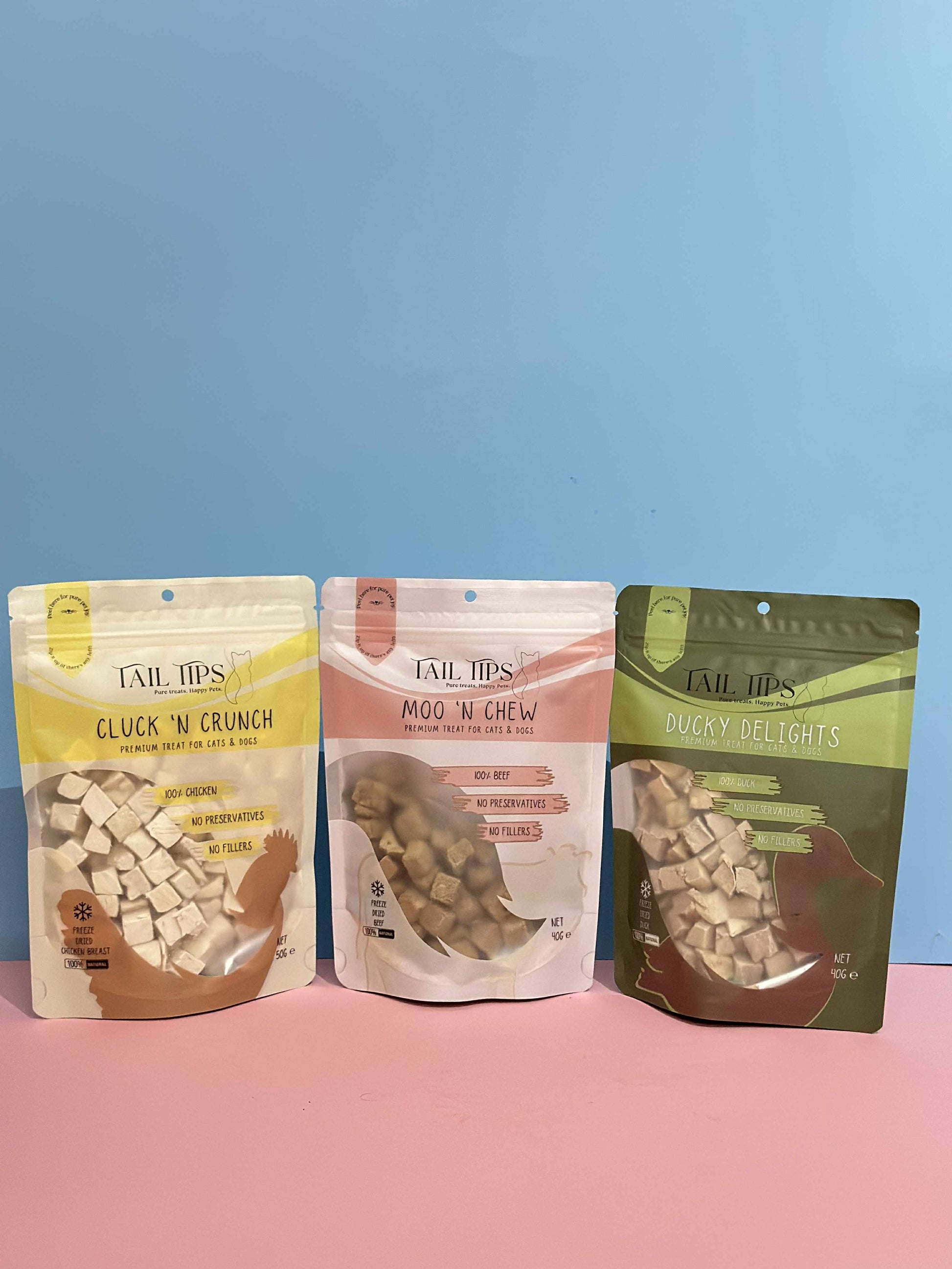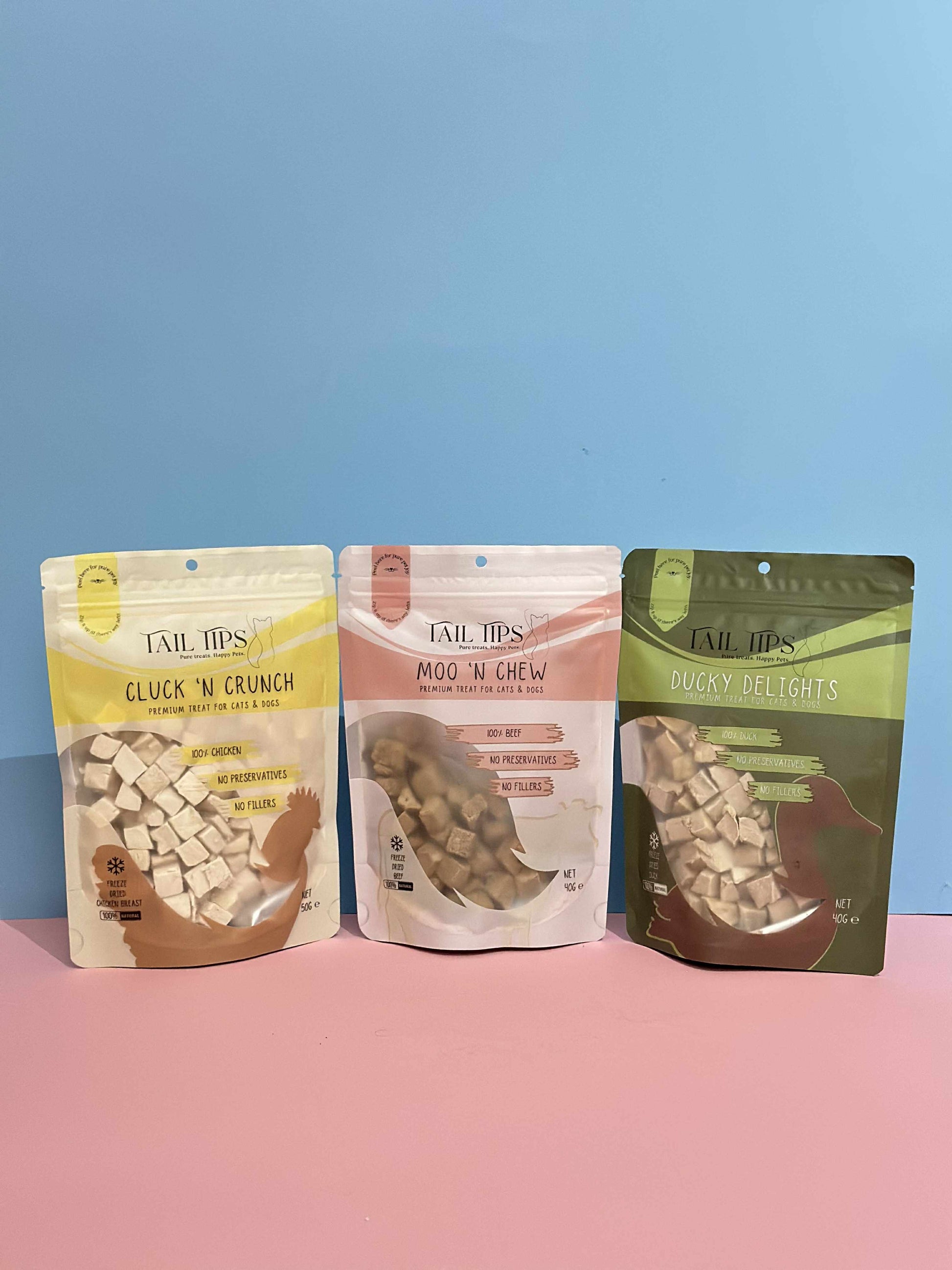Premium Freeze-Dried Poultry Treats | 3 Flavours | Tail Tips UK